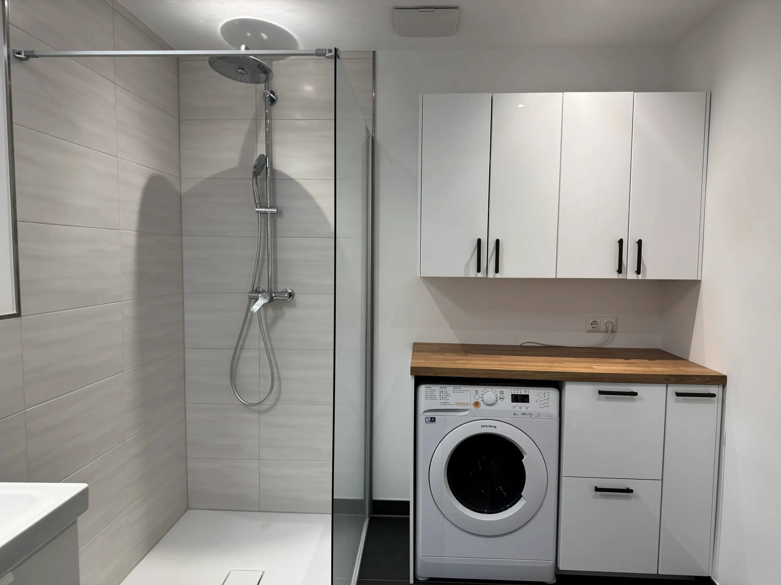 - Waschmaschine, Staubsauger und moderner Flachbild-TV (Smart-TV), alles bereits vorhanden.